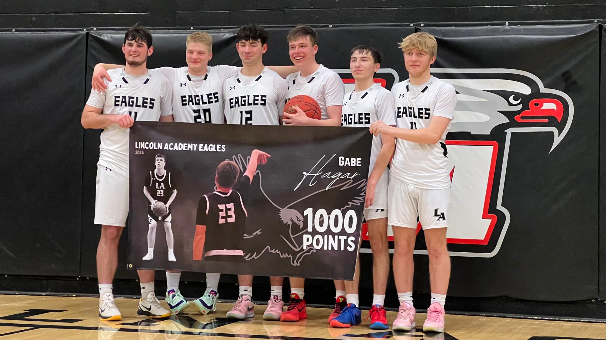 I went to the Lincoln Academy/Leavitt game to catch Gabe Hagar scoring his 1,000th point. He's the 9th Lincoln Academy player to get there.