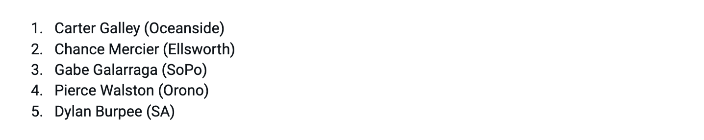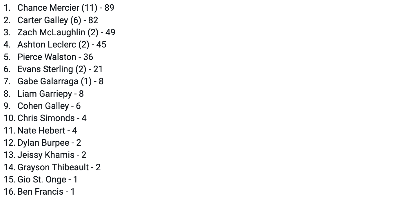 My thinking was Mercier might be ahead at the moment, but Galley will probably get Oceanside to at least the Regional Final and score over 100 points in the process and that'll look pretty, pretty good to the voters. And we all know that points scored in Portland are worth more than points scored in Bangor.