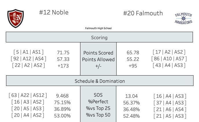 They head to Falmouth. The defending regional champs are humming along, like always. They're 2nd in scoring despite playing one of the hardest schedules in the region.