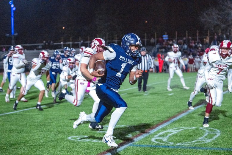 And then Cordell Jones fully took over. He led Portland down the field and rushed it in from 8 to take a 1-point lead, came up with a pick on Bangor's next possession, then scored another touchdown to make the lead 8. Bangor had one more chance, but Portland's defensive line came up huge on 3 straight plays and Portland escaped with a 30-22.