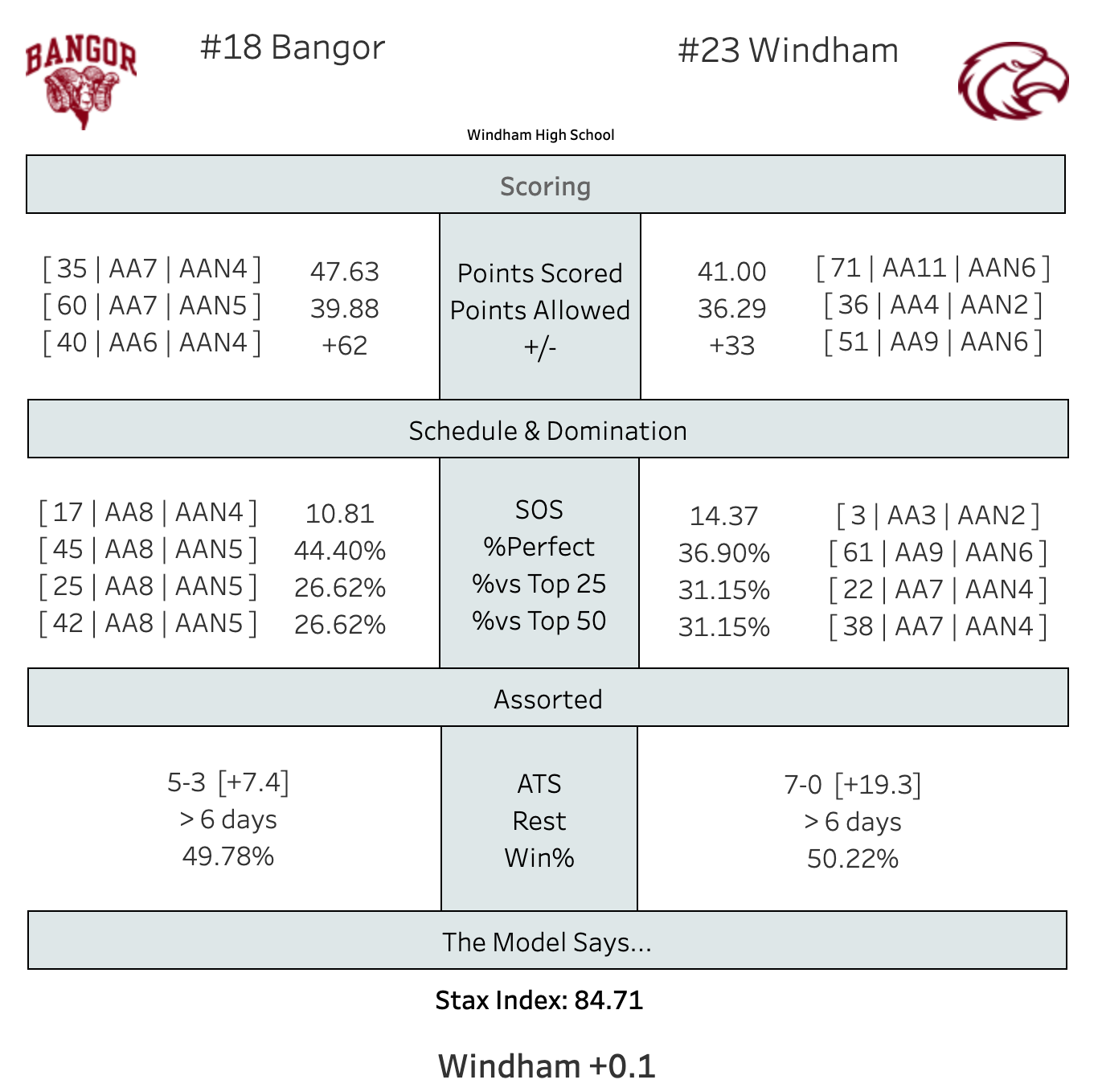 Bangor is 5-3 with losses to #1 Oxford Hills, #2 Cheverus, and #4 Edward Little and have only 1 game left against a team currently in the top 20 (Edward Little on January 31st), so if they can get a win here, they could potentially go on a pretty nice