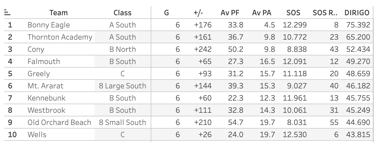 Bonny Eagle increased their lead in the football power rankings. I'm going to guess the Thornton Academy at Bonny Eagle matchup on the 24 is Game of the Day.