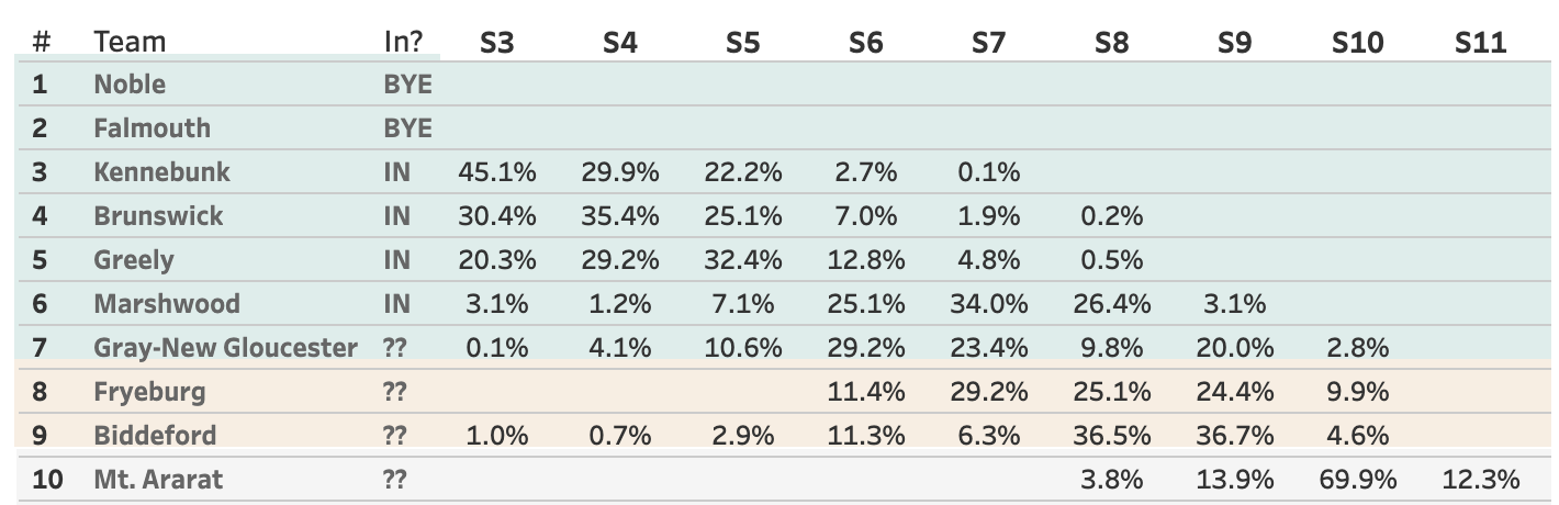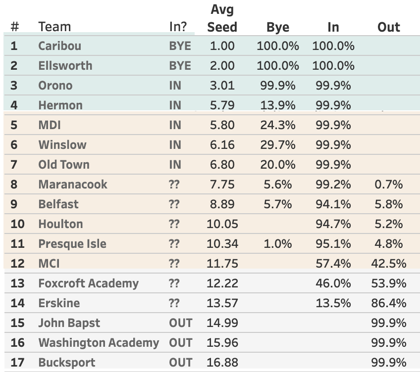 The Black Bears are in the middle of a B North that's an absolute mess from 4 to 15. 8 different teams could get the 4 seed. 7 different teams still have a "??" next to their name in the Tourney Odds. For context, we know 9 of the 10 tourney teams in B South.