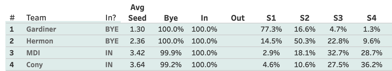 They have no bad losses. The two EL losses make sense, as does the loss at GNG. Losing at Greely by 2 isn't shocking. There's a nice Wells win, but the big one is that win over GNG that was a real surprise when it came across the wire. They've also got the 7th hardest schedule in the state so far and the second hardest in B South (Medomak Valley) and the Model loves a hard schedule where you're competitive in every game.