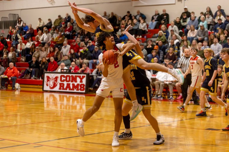 Cony had 6 players score 12 points or more. Jackson Kay led the way with 18 & 7. Medomak only had 4 players score. Nguyen led all scorers with 36 and Kollin Donlin added 26 & 9.