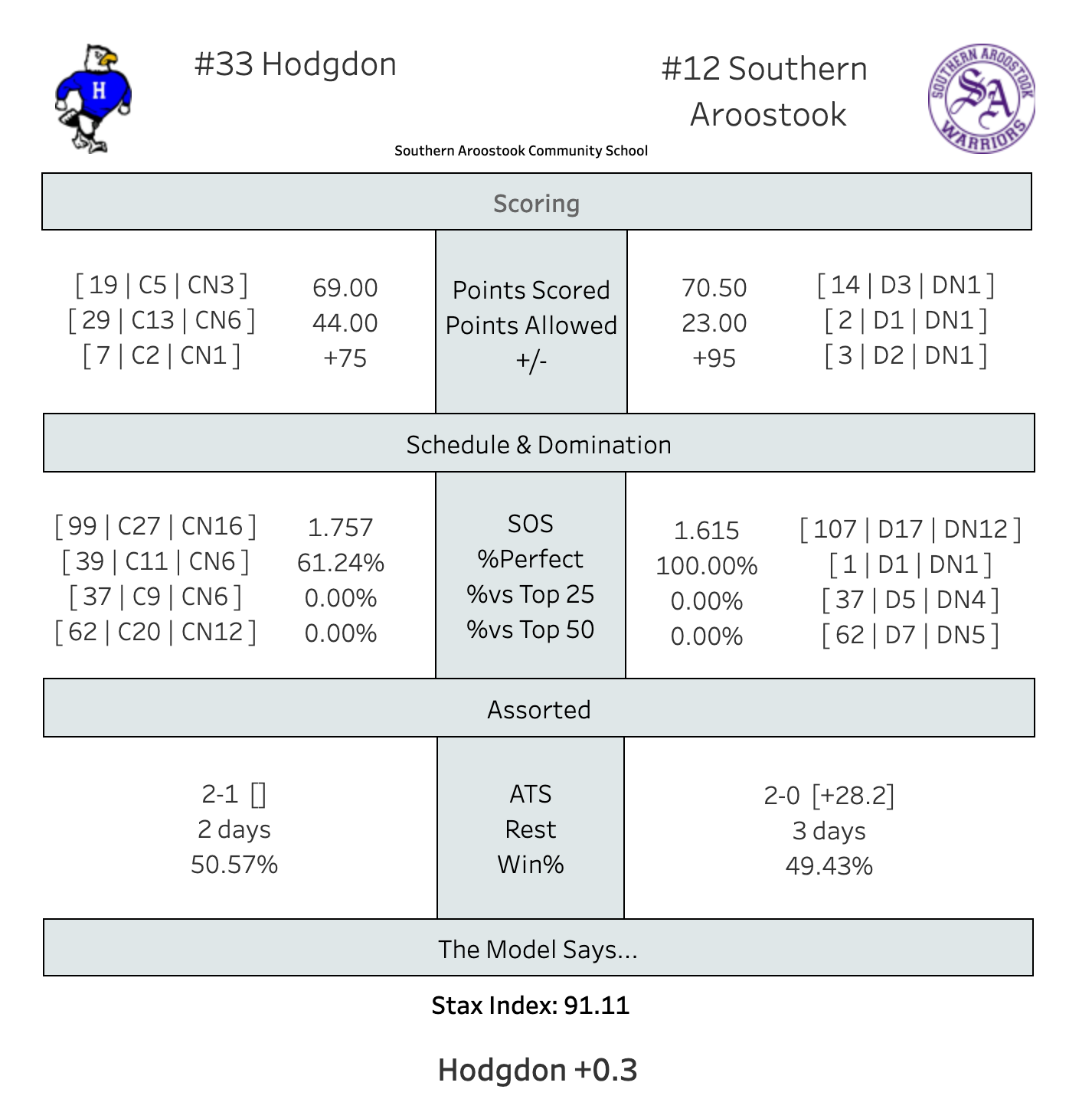 We're back in the County where the Southern Aroostook boys are out-scoring their opponents by 47.5 points per game. And while it's not the hardest schedule so far, it's still 47.5 points per game. They lead D North in everything.