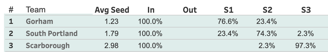This is pretty simple. The Tourney Odds have Gorham as a favorite to get the 1 seed, but if SoPo can win out, it'll be theirs.