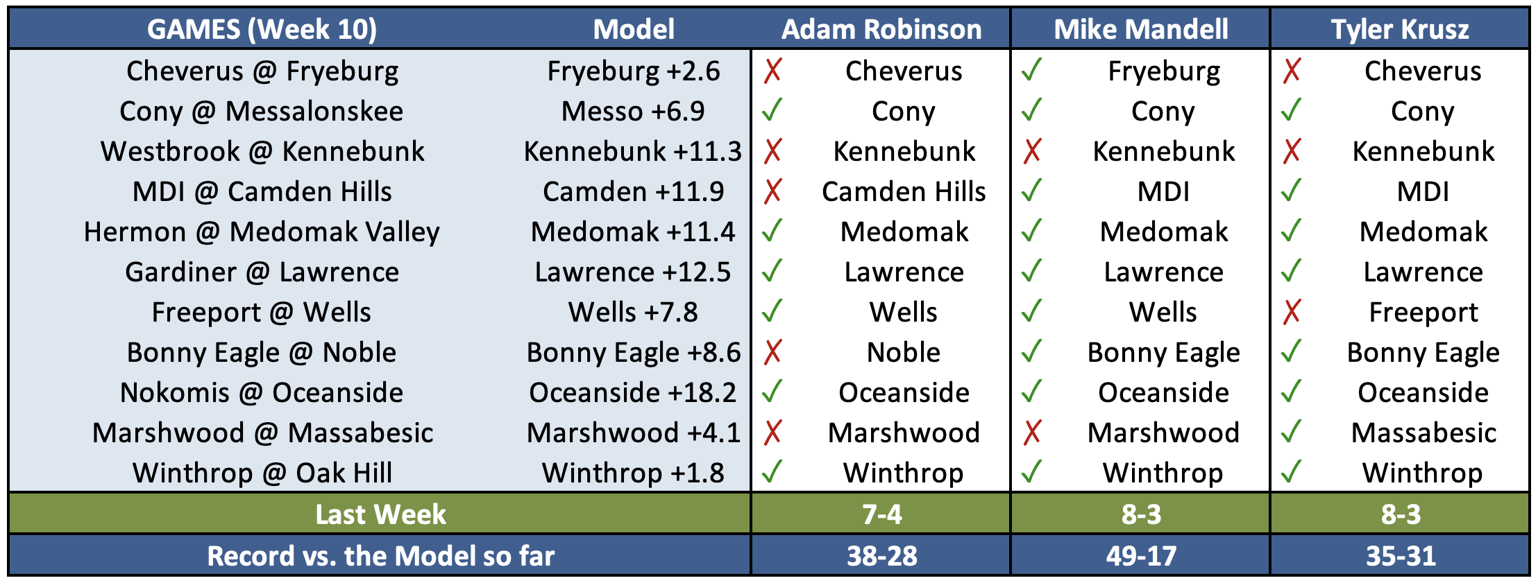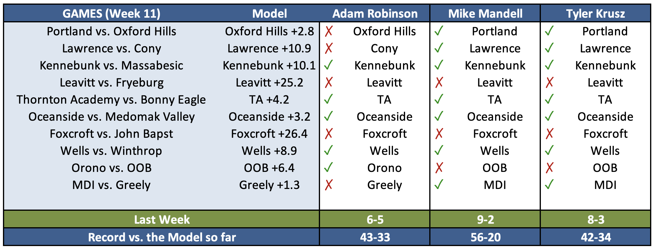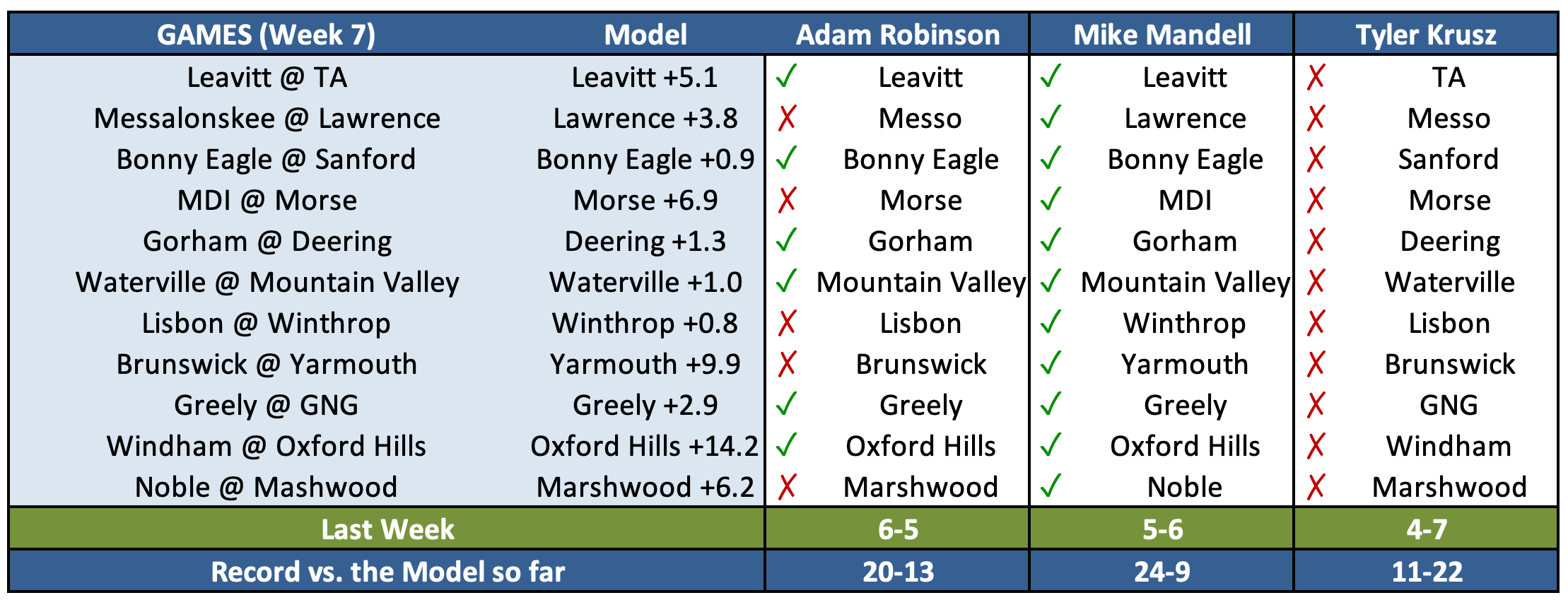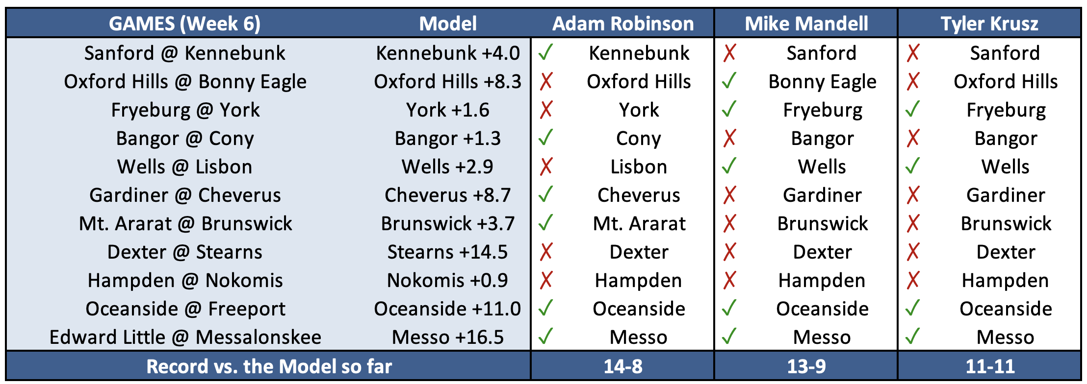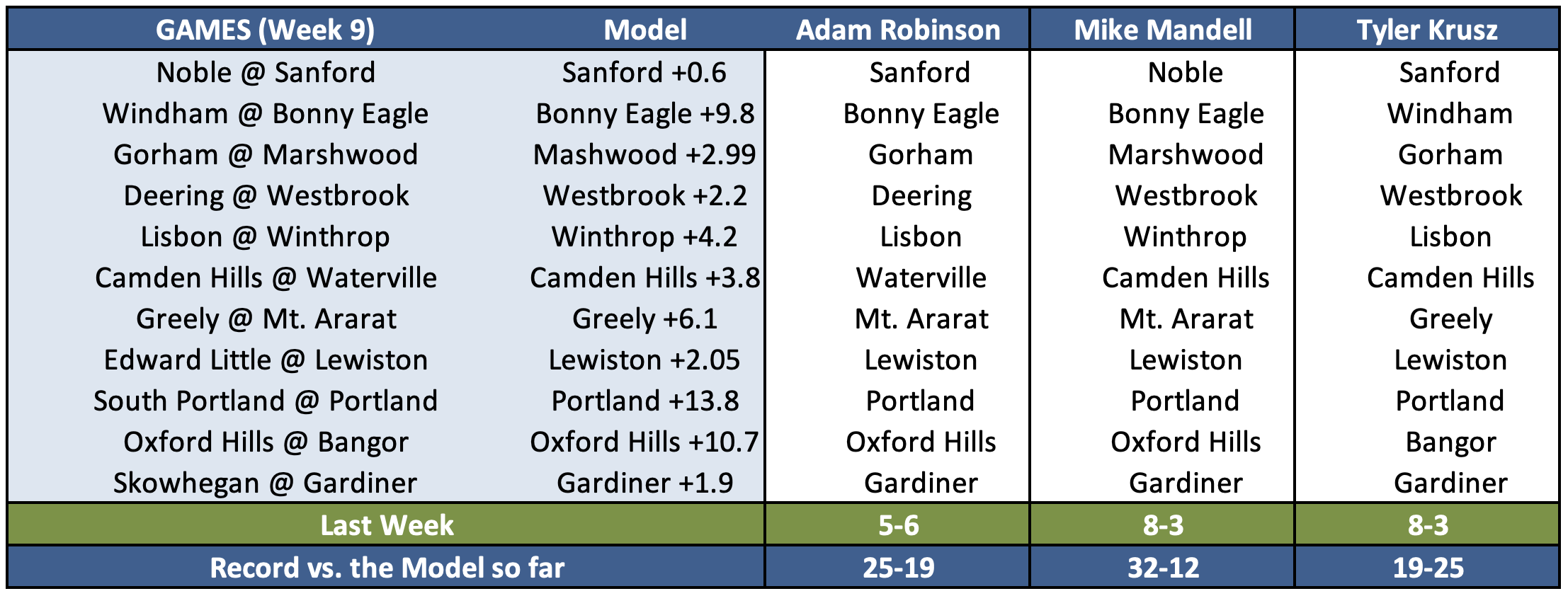 As the sci-fi movies have told us time and time again, we're all just waiting for the machines to take over, but still humanity fights on. In the tradition of John Henry (the steel driving man, not the guy who wouldn't pay Mookie Betts), Adam Robinson of Maine Sports Today, Tyler Krusz of Fox Bangor, and Mike Mandell of CentralMaine.com will attempt to beat the point spreads provided by the Model. Their prize? Immortality? Perhaps a ballad of their exploits? That remains to be seen.