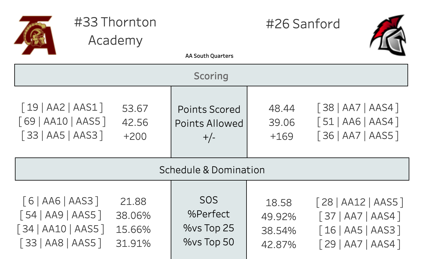 Thornton Academy is the 5 seed, but they've beaten Sanford twice, by 16 on Opening Night and by 8 on January 30th on the road, the last of a 4-game losing streak for Sanford.