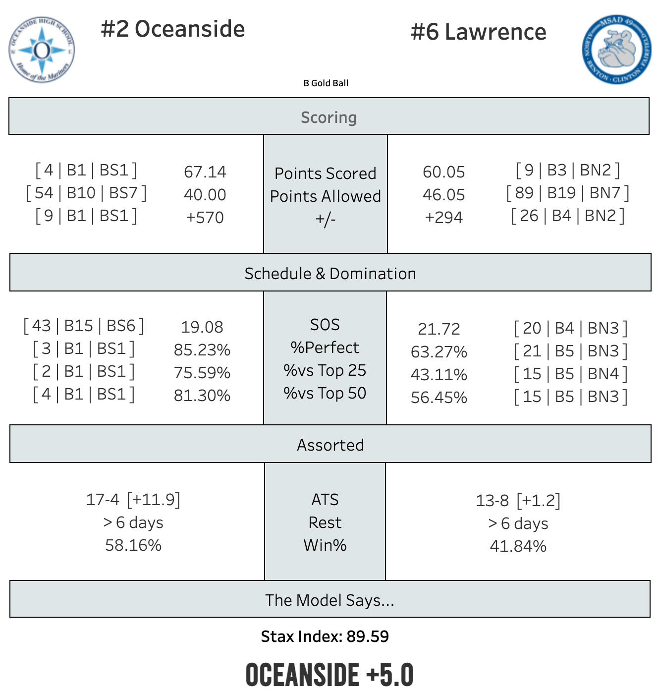 Lawrence and Oceanside split in their regular season series, including an overtime game way back on December 9th. That was Oceanside's last loss and no one got within 15 points of them in the B South Regional, so naturally they didn't win the tournament MVP, despite shooting 47.5% from three as a team.