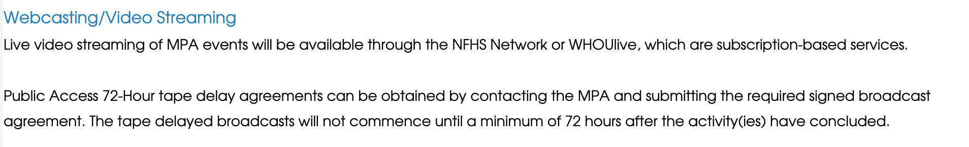WHOU, Maine Public, and NFHS pay money for the exclusive rights to broadcast the live video from these games and the MPA is obligated to make sure those rights are protected. And you can think that some exemption should be set up for students to learn. There is. They can do an audio-only stream (like 92.9 the Ticket does...with permission to include the live stats)