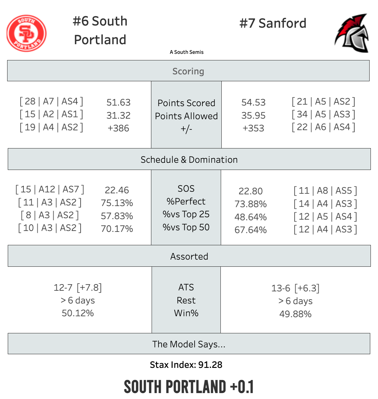 South Portland has the top defense in A South and put the clamps on Westbrook in the second half in the quarterfinals. They also just happen to be the defending state champs in a region with 3 Regional Champions from last season.