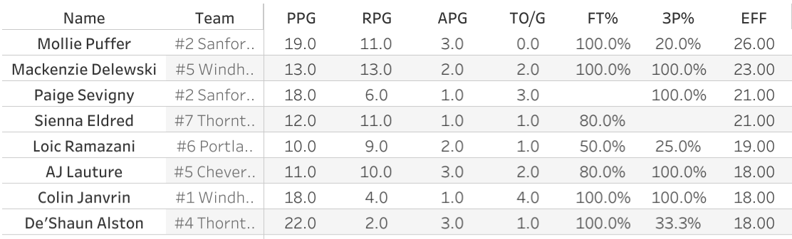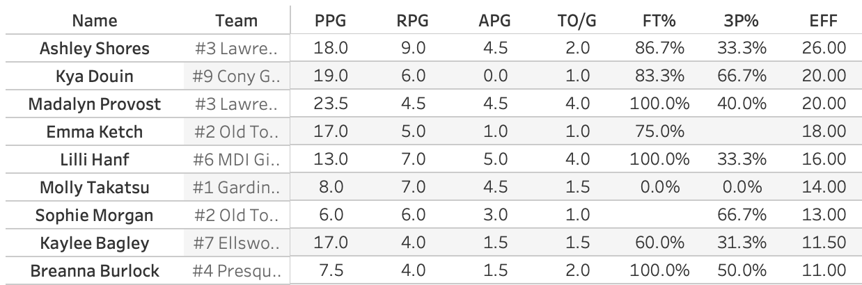 And let's take a look at the player stats from Girls B North. Are we not talking about Ashley Shores enough?