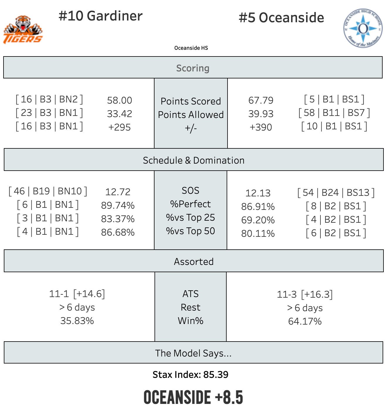 Oceanside leads B South in scoring offense, +/-, and %Perfect--basically the same trifecta, just on the other end of the floor.