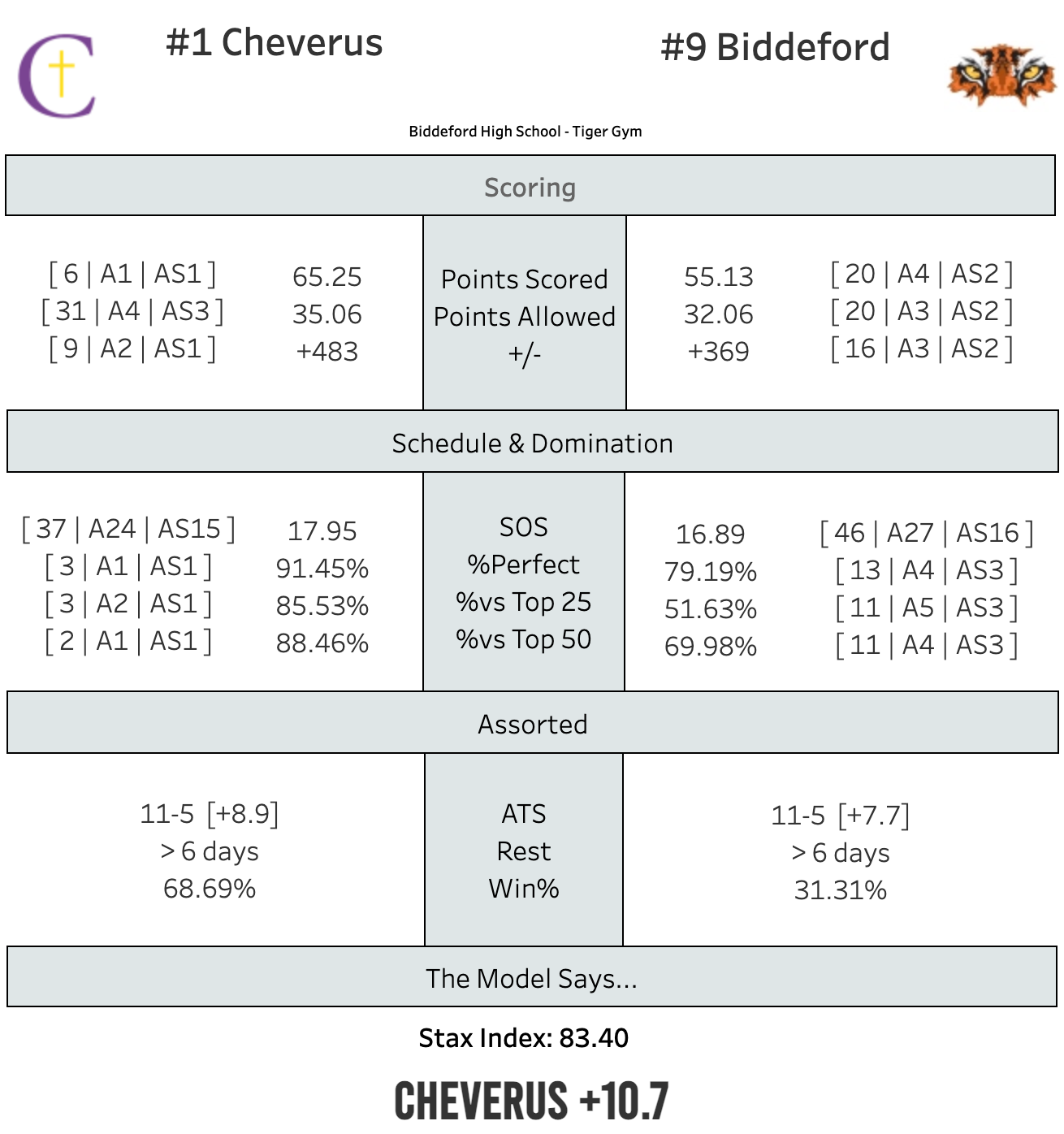 Biddeford is no slouch. The reigning B South champs are second in A South in scoring, defense, and point differential. They're 3rd in %Perfect. Oh, and they still only have 1 senior.