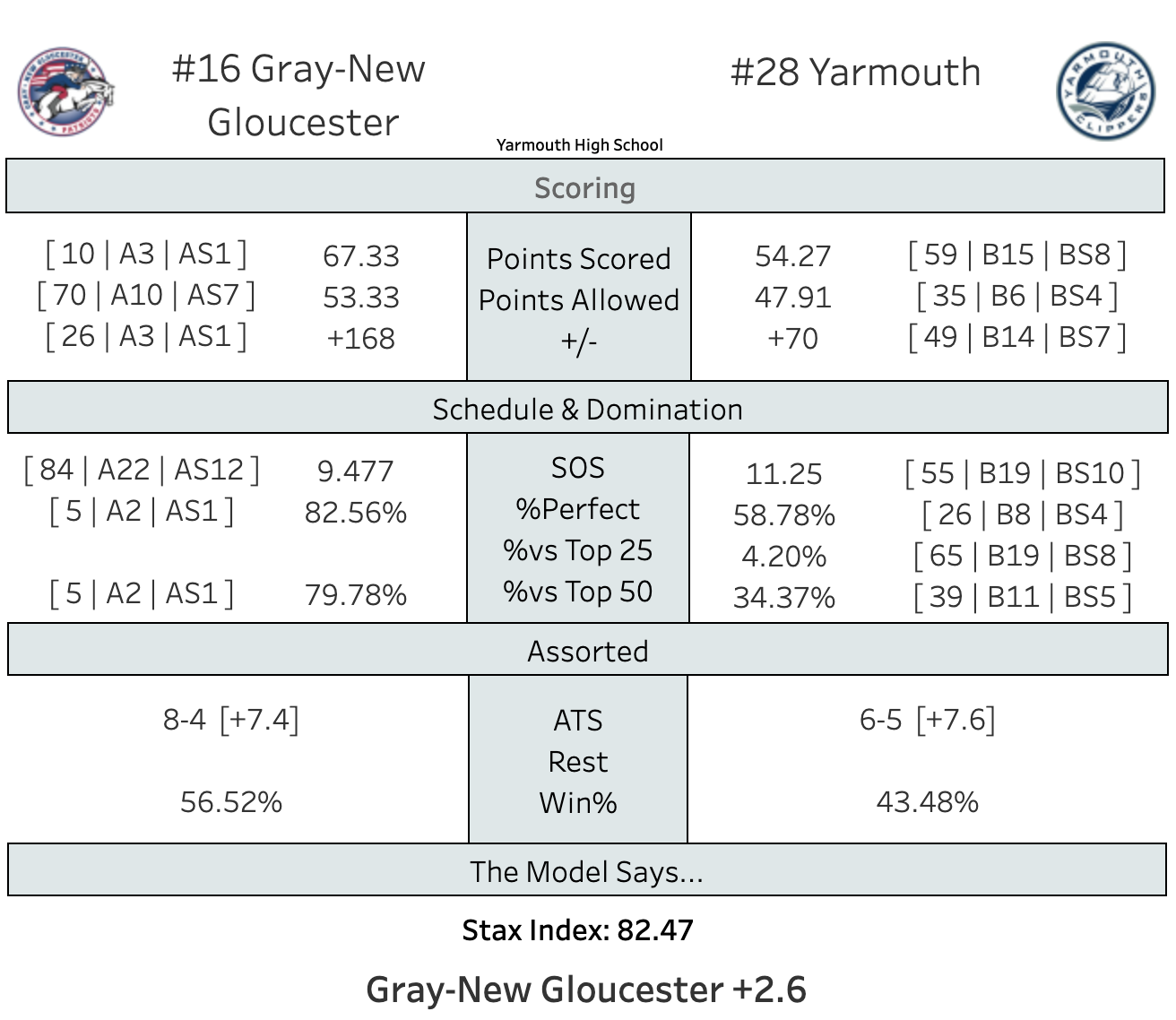Yarmouth has had and up and down year. They're 7-4 and while the MPA's site has them in 5th place, they're actually in 6th. That's a crucial spot in B South, as 6 will go directly to the Expo. The Clippers are in pretty good shape. Entering last night's action, they had a 77% chance to finish in the top 6. This is the biggest opportunity left on their schedule.