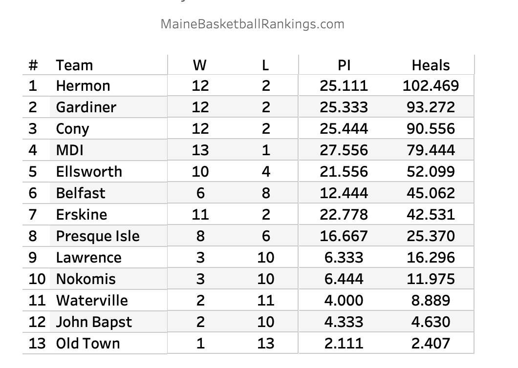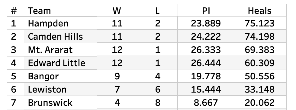 But how are they 4th at 12-1? Well, Mt. Ararat, Camden, and Hampden all have pretty good records themselves and the Eddies have played the easiest schedule in A North, which naturally limits the Heal Point opportunities.