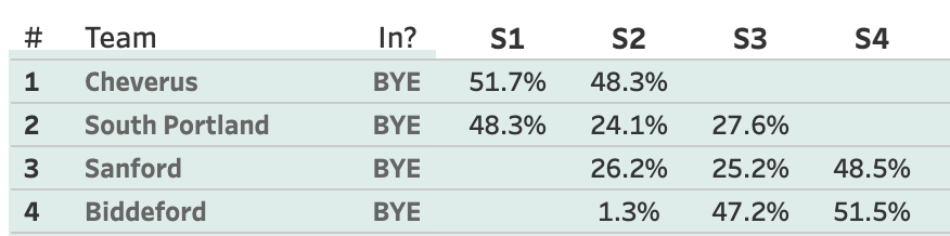 This is pretty simple: winner gets the 1 seed. Also: Biddeford is playing Sanford in a game that would be the Game of the Day on any other day. Sanford can get to the 2 with a South Portland loss and Biddeford can get to the 3 with a win.