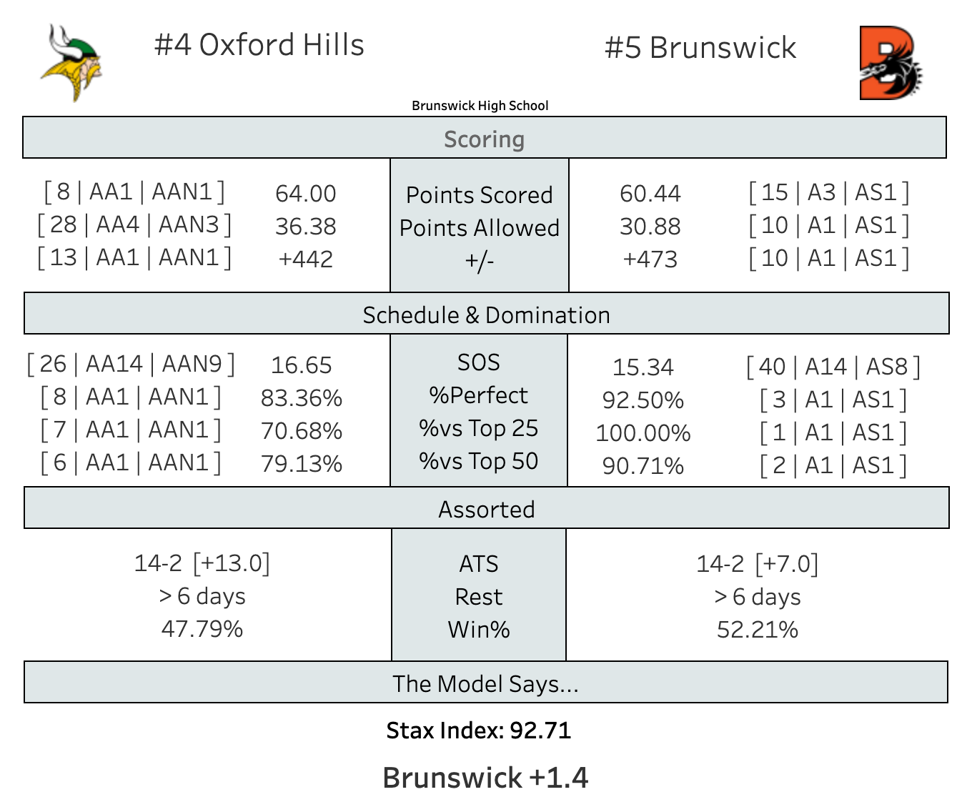 You can parse these numbers any way you want and you'll always come up with the same answer: these are 2 of the best teams in the state. And what we have tonight is a late-season inter-class matchup that is a fantastic primer for the tournament, even if these two teams won't play each other.