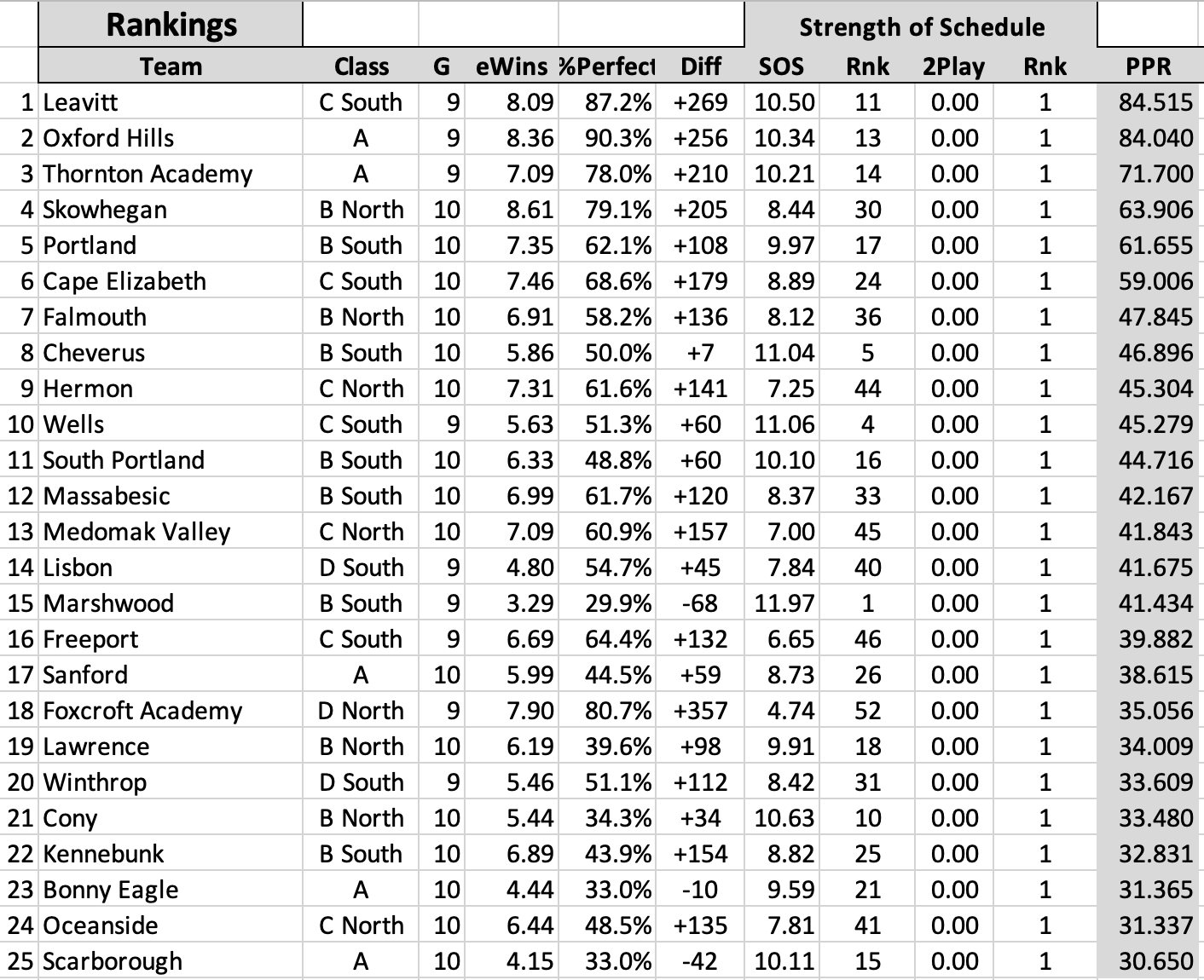 Here's your Top 25. Feel free to compare it to others. One note is that the Model weighs playoff games more heavily than regular season games. Leavitt moves to #1 on the strength of having played a playoff game.