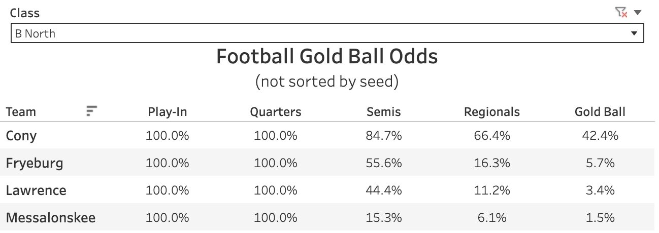 The Fall Gold Ball Odds are updated for the Gold Ball games in soccer and field hockey and also whatever round your team in currently in for football.