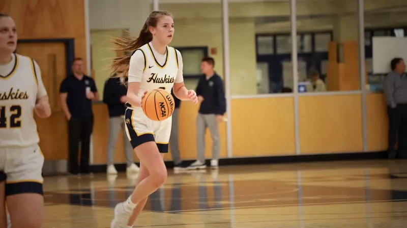 Brunswick alumni and 2024 State Champions Dakota Shipley and Maddy Werner found themselves in the unfamiliar position of having to guard each other in UNE's 58-44 win over USM.