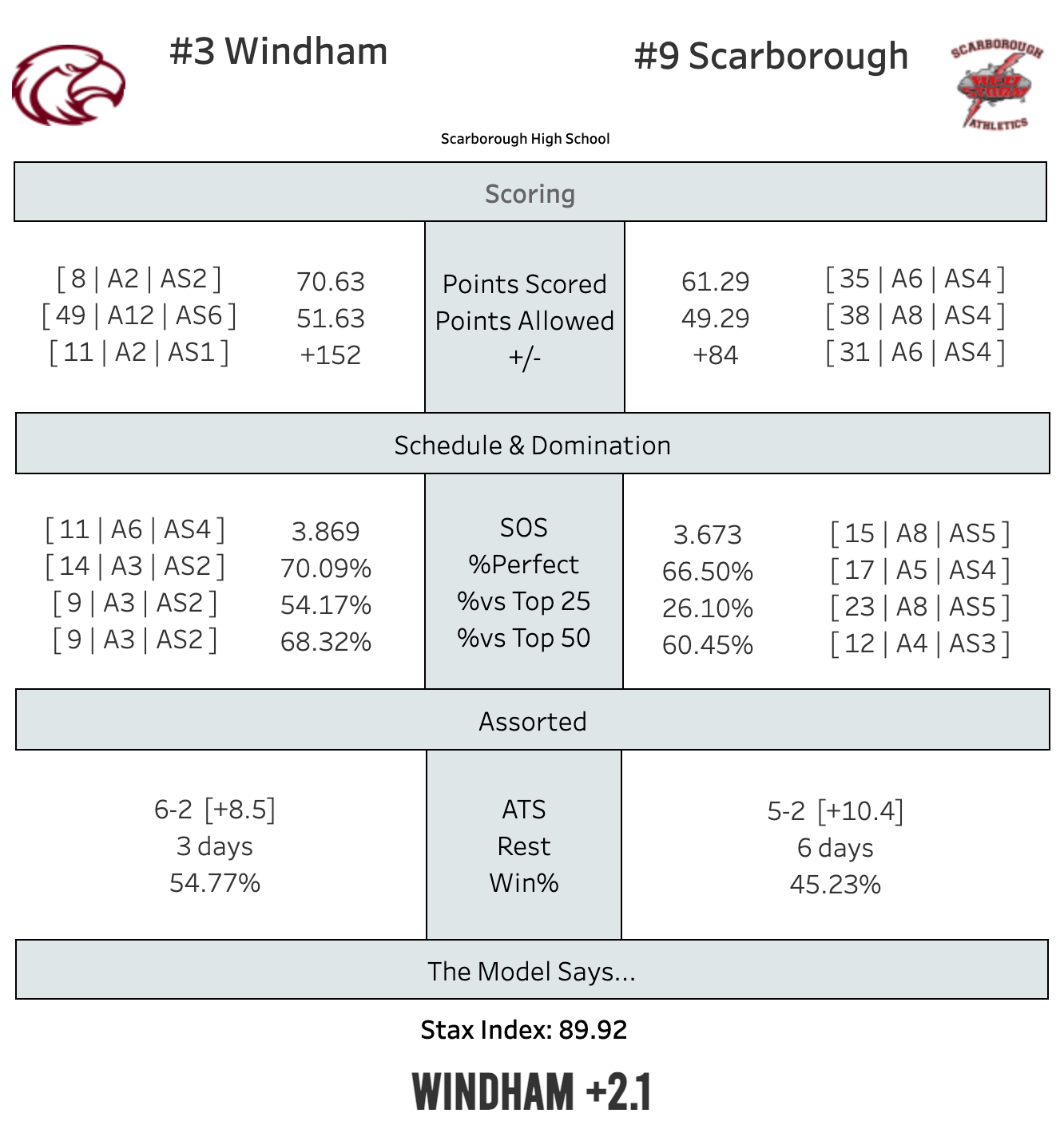 Scarborough's 5-2 and coming off a win over Portland where Carter Ryan came off the bench to hit 9 3's. They're probably going to need a couple of those to knock off the champs.