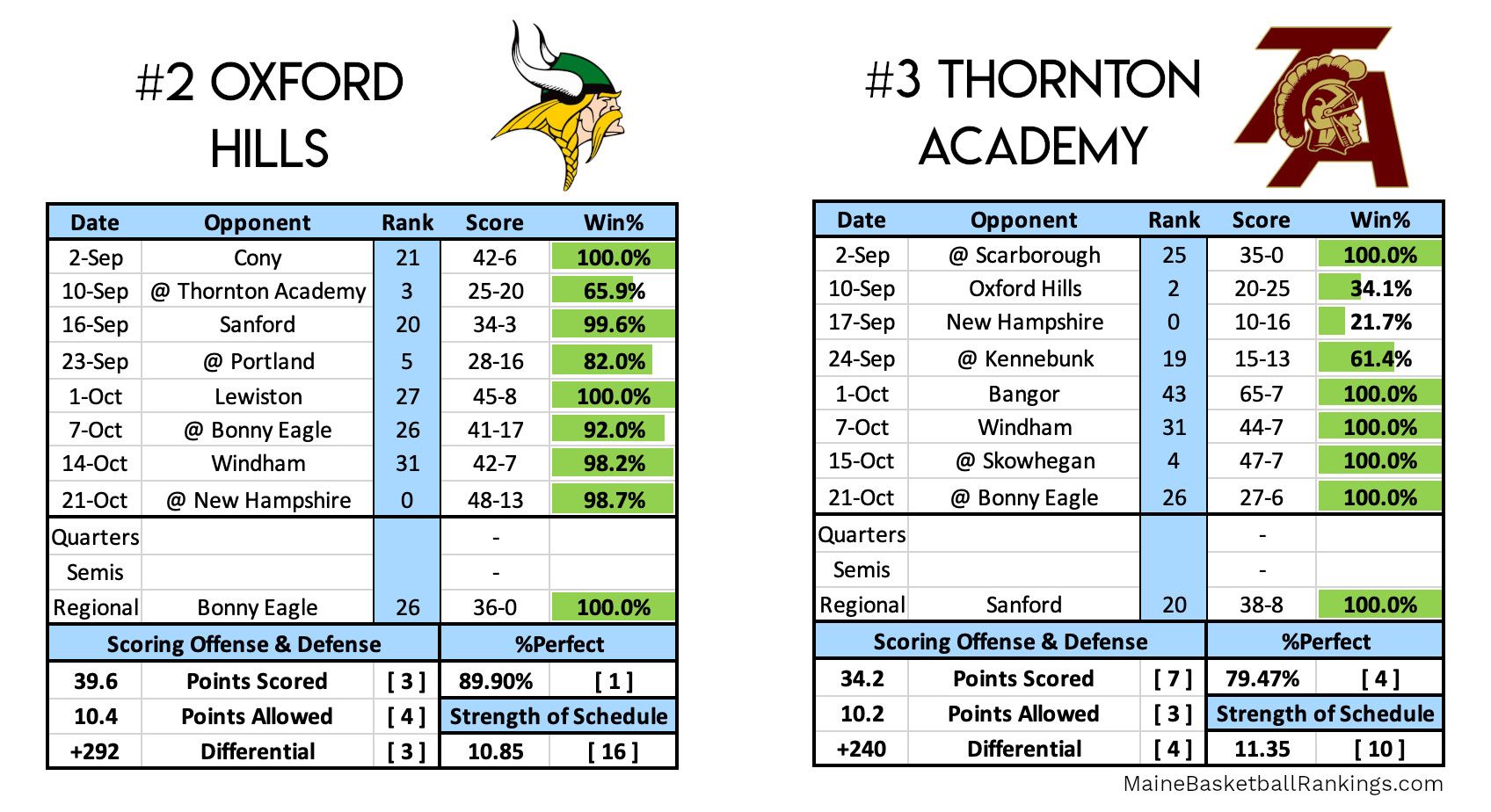 Anyway, after that initial matchup, the Vikings have hardly been tested. Meanwhile, Thornton Academy's defense has been suffocating since the calendar turned to October, holding opponents to single digits in 5 straight games. They'll need that defense to show up against the 3rd highest scoring team in the state.