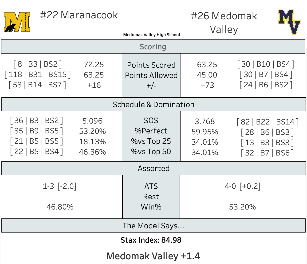 They both lost to Oceanside. Medomak by 5 on the road and Maranacook by 9 at home. Based solely on that, you'd expect a close one and it looks like that's what we're likely to get.