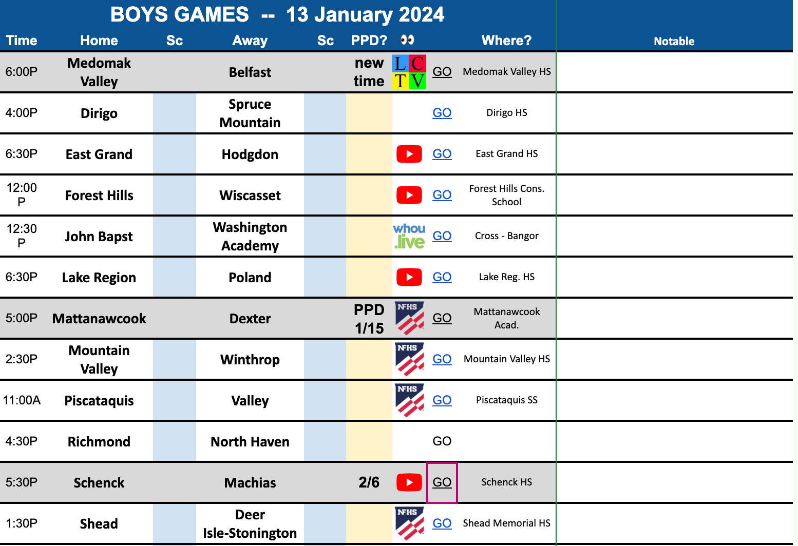 So we'll head to Dirigo. They host the Spruce Mountain boys (maybe).