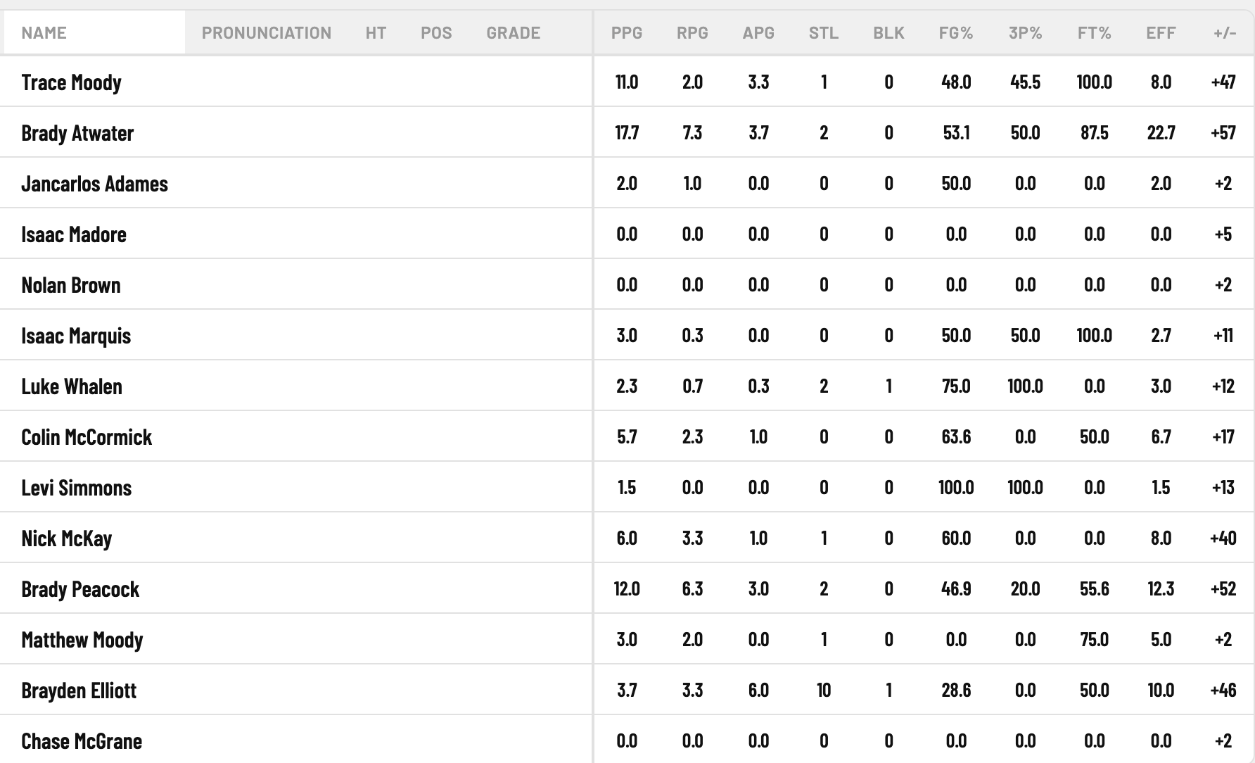 And a team's roster with stats. There's even a spot for Pronunciation!