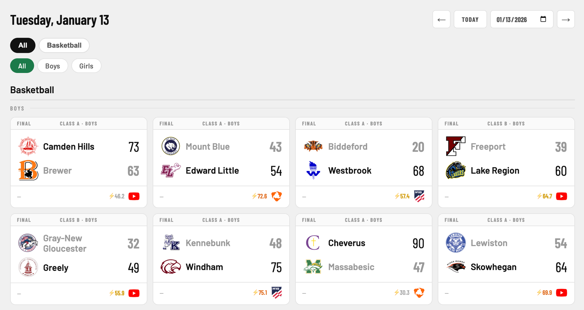 You'll remember the scoreboard page from last season. This is that on steroids. Let's look at a date from this past basketball season as an example.