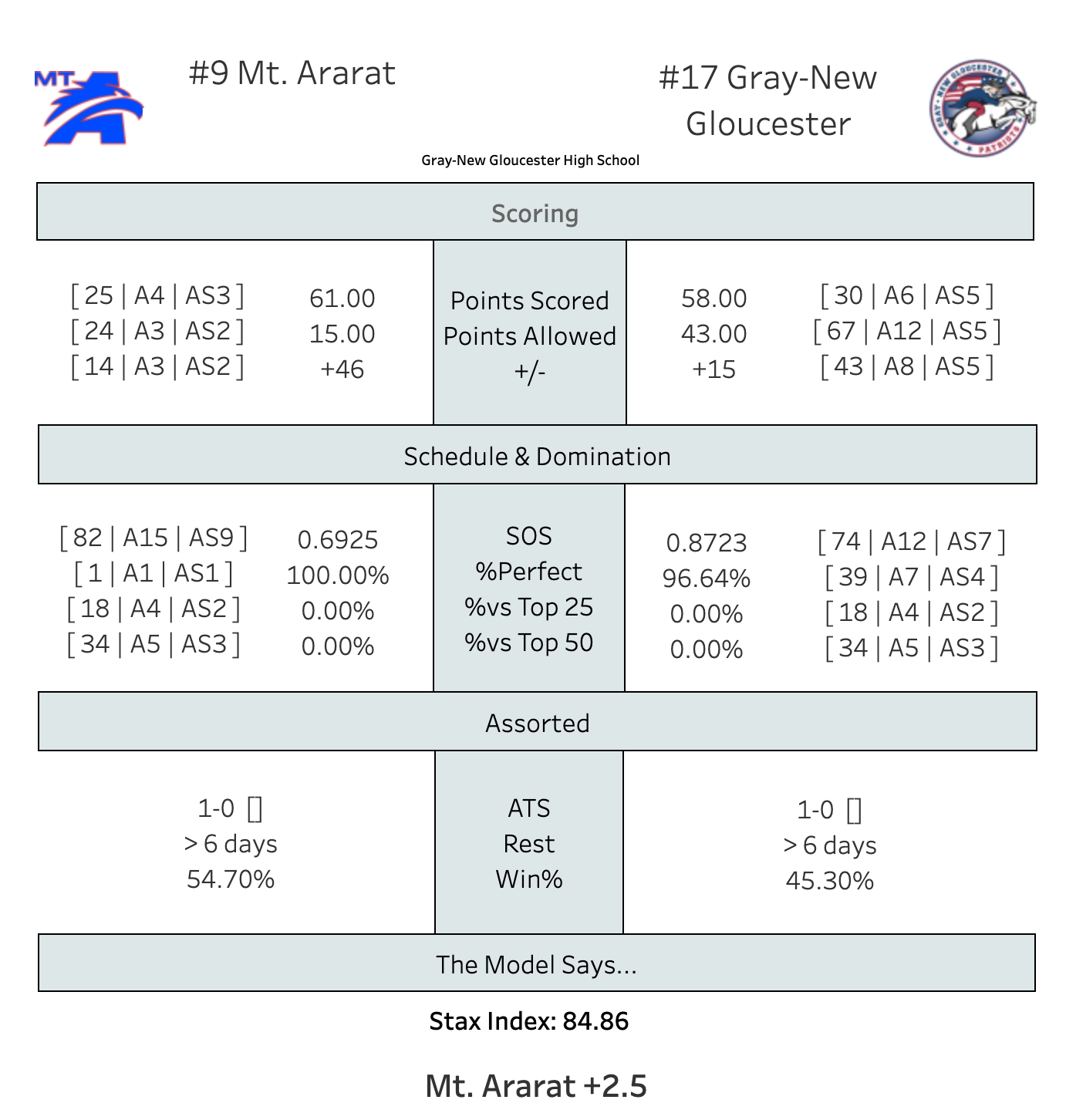 It's early in the season and there's a ton of noise in Model. Falmouth hasn't even played a game! So, yeah, if it were me and I was in southern Maine, I'd go to Gorham/Windham or Noble/Falmouth (the Stax Index is lower on these because the Model has those both as double-digit games).