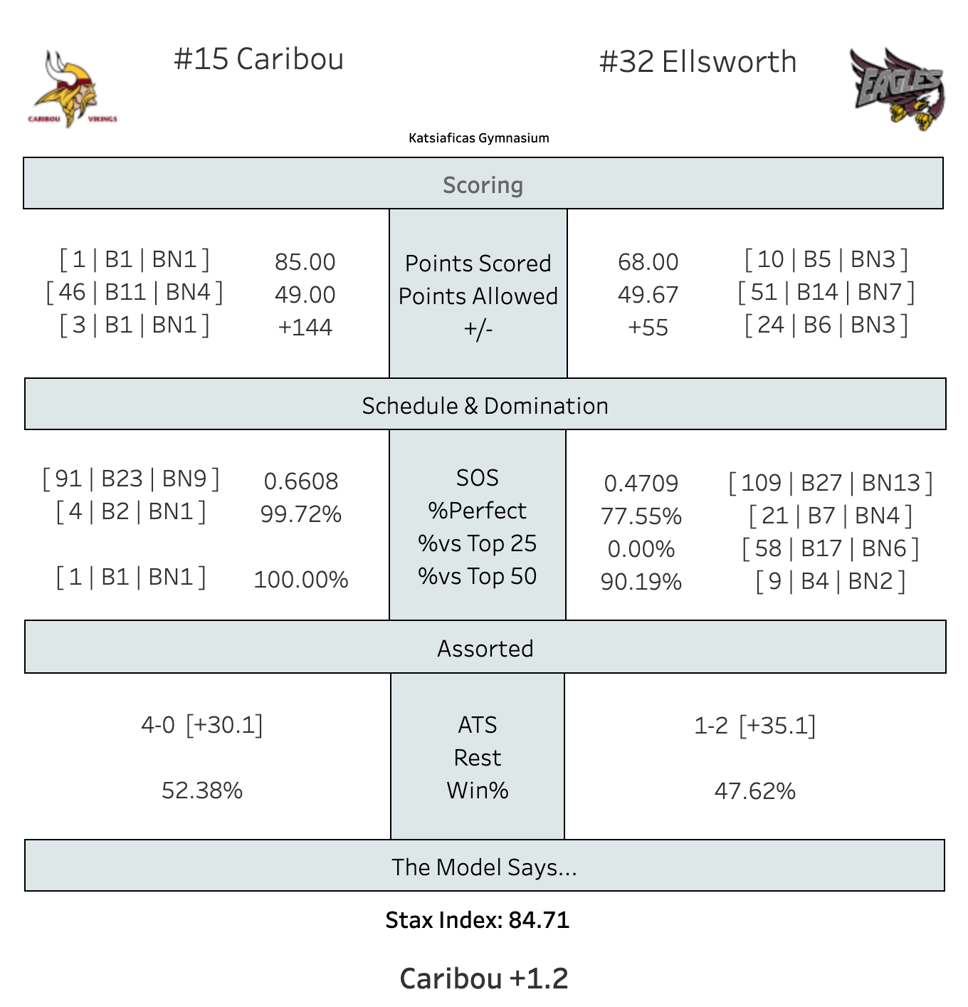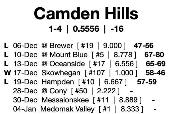 They're leading the state in scoring at 85(!) PPG (#2 is Windham at 79.3) and are 3rd in point differential at +144 (Hodgdon is first at +195). If you want to quibble with the early results--which are clearly impressive--it's that the best team they've played so far is #40 Houlton.