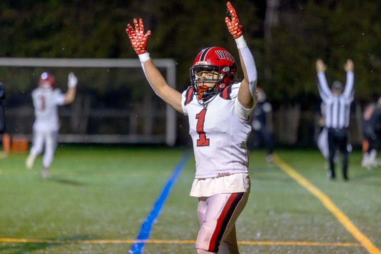 But Walker won't be denied. He leads Falmouth down the field with clutch throw after clutch throw, converting his own 4th and 7. Then with 29 seconds left, he runs a no doubter into the end zone.