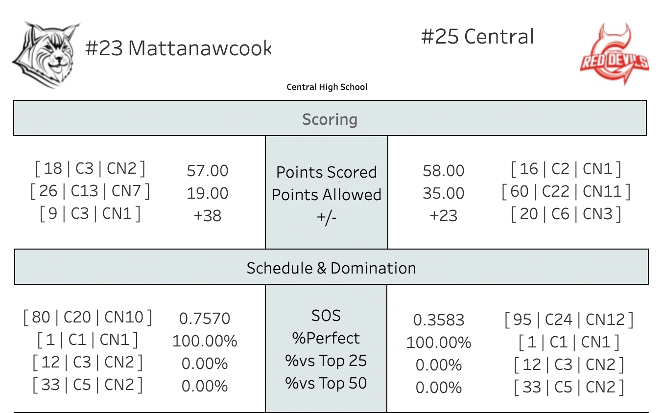 We go to C North girls where Mattanawcook rocketed up the rankings with a 38-point win over last year's 2 seed Calais. That's a win that looks really impressive now, but will probably not look so great in a week or two. The rankings are really volatile until we get 3-4 games deep. They'll travel to Central to take on the Red Devils. They made short work of GSA in their opener.