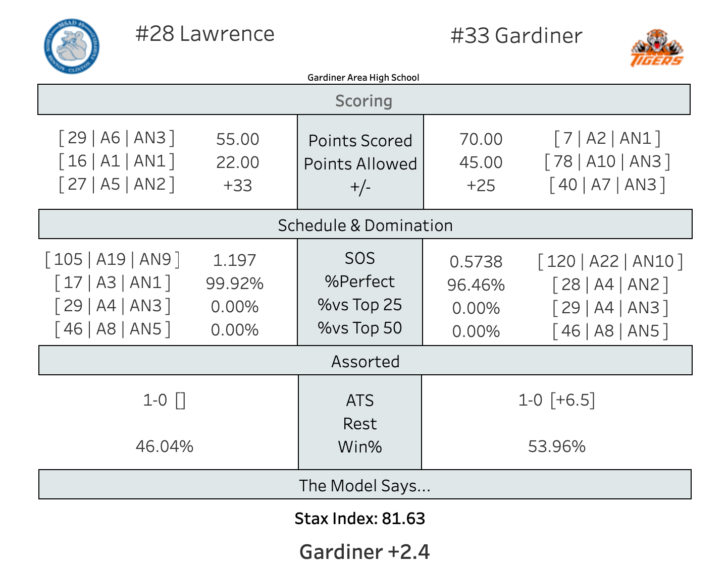 Last night, the Stax Index showed us it can be wrong sometimes too, as the Portland boys handled Bonny Eagle somewhat easily, 42-28. The Bulldogs win their first game of the year.
