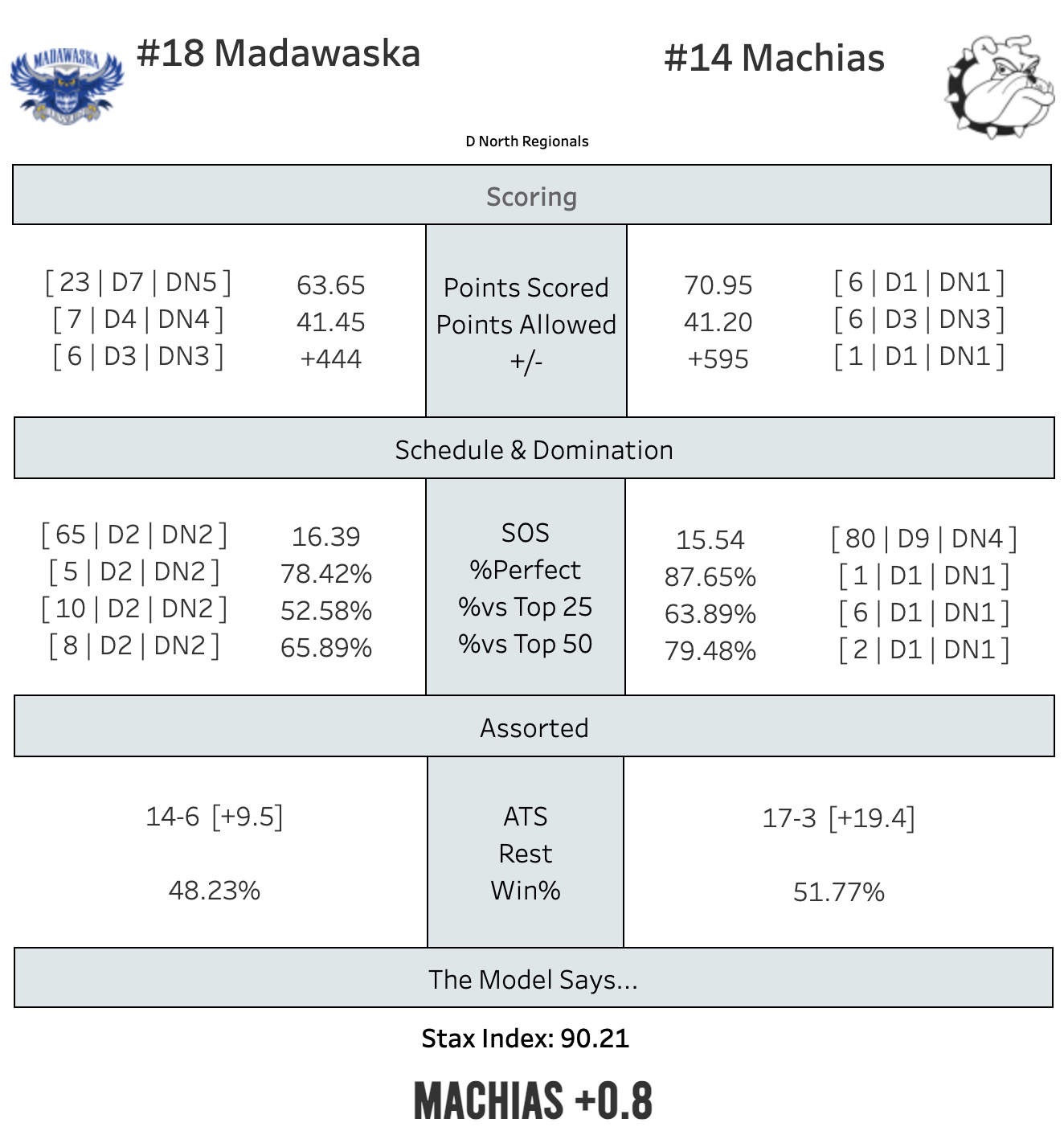 Machias is 6th in scoring offense and leads the state in scoring differential, even higher than Valley (+540).