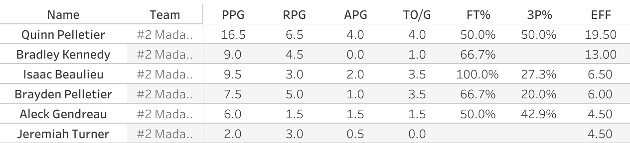 Carter Braithwaite ended up with 32/7/6. Not back for a freshman in a Regional Final. Parker Morin added 16/7. Brady Atwater led Gardiner with 27 on an 88% eFG% and had 6 boards and 4 assists. Brayden Elliott dished out 10 assists.