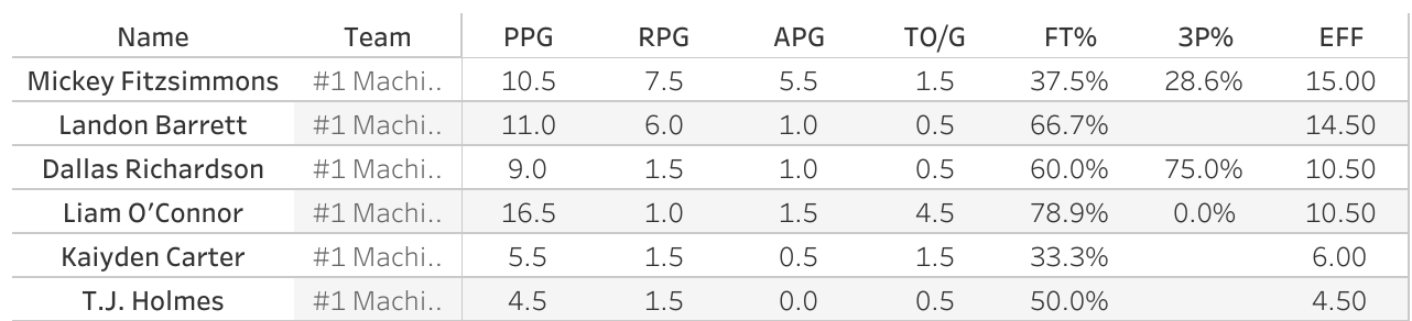 Machias is led by 1,000 point scorer Mickey Fitzsimmons, who has struggled shooting in this tourney.