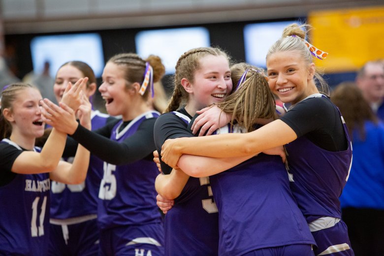 Over in Augusta, Mt. Ararat was arguably the biggest favorite of the day. After all, the defending champs were deep and very good and had just beaten Hampden by 17 at the end of the regular season. So when the Eagles opened up with an 8-0 lead, it had to feel like it might be a wrap. Hampden didn't think so. Aubrey Shaw scored 5 points in a 7-0 Broncos run to get back in it.