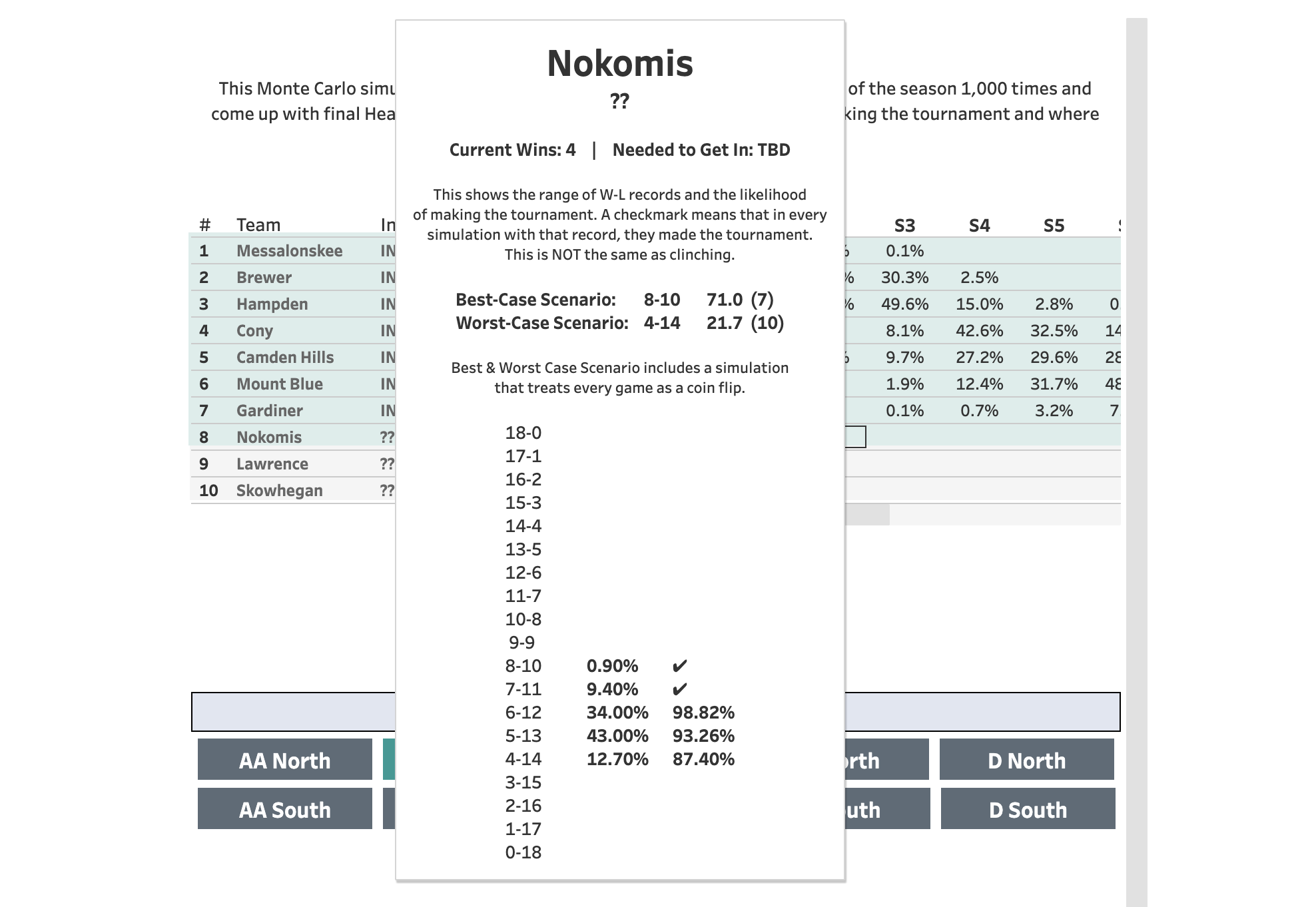 If you're wondering how the Tourney Odds pop-up works, it's a little confusing, but not really. Let's look at Nokomis.