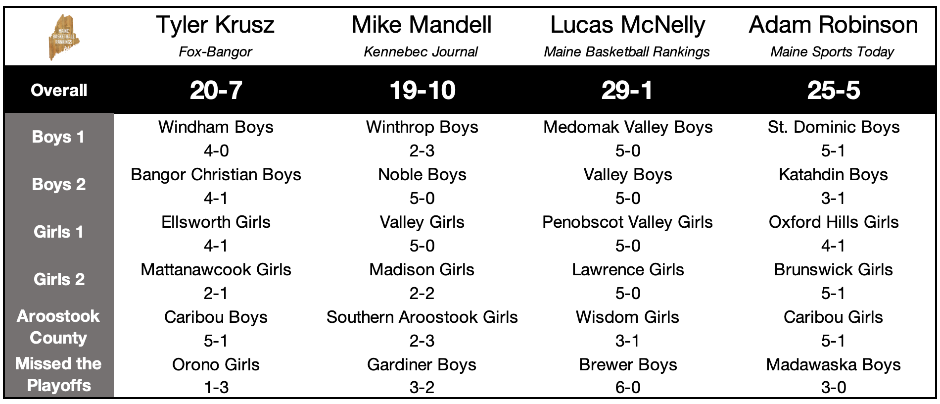 Ryan Bourgoin had 20 & 8 in Forest Hills' win over Valley...Fort Kent's Aden Jeffers dropped 39 on Wisdom...Lily Oliver juuuust missed a triple-double in the girls' game with 36 points, 14 rebounds, and 9 steals...Reece MacDonald's 23 points helped York survive a scare from GNG, who got 28 from John Patenaude and 21 from Colby Mitchell...Morgan Petrucci had 12 and 19 for Forest Hills...Ella Pelletier went for 23 in Oxford Hills' win over Sanford...Lilly Bellrose's 20 led Spruce to a blowout of Boothbay...Valley's Liana Hartwell registered a triple-double against Piscataquis with 14 points, 12 boards, and 11 assists.