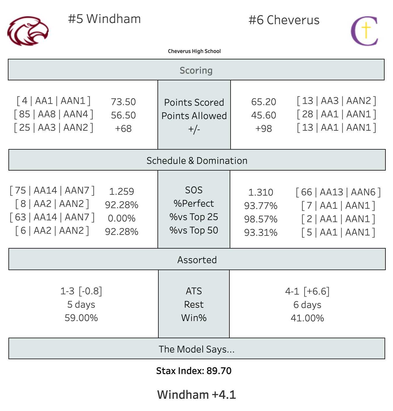 The defending champs from Windham are starting the post-Christmas part of their schedule with a trip to Cheverus to face the Stags. The Eagles are 4-0 so far with the 4th highest-scoring offense at 73.5 points a game. However, they have yet to play a team that's currently in the Top 25, with Gorham, Portland, and Edward Little all sitting just outside in the 30s. They're 5th in the Power Rankings, with some of that being because they've only played 4 games. I should maybe adjust it to, not weighted on a per game basis exactly, but nudge it in that direction.