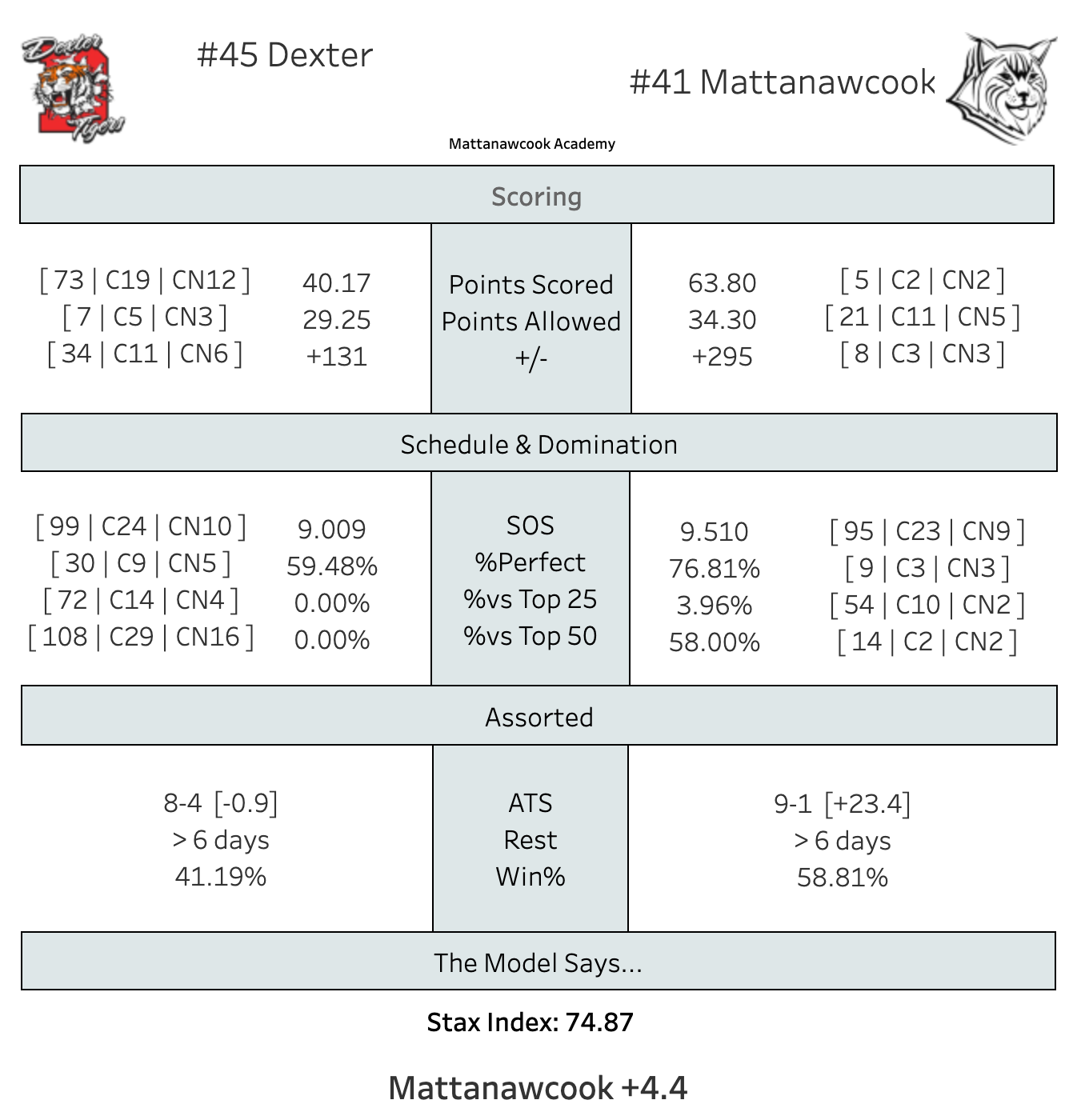 The Model had Wiscasset as a very slight favorite in this one and that was looking pretty good when they led 24-20 at the half, but Morse was able to right the ship in the second half, pulling away for a win.