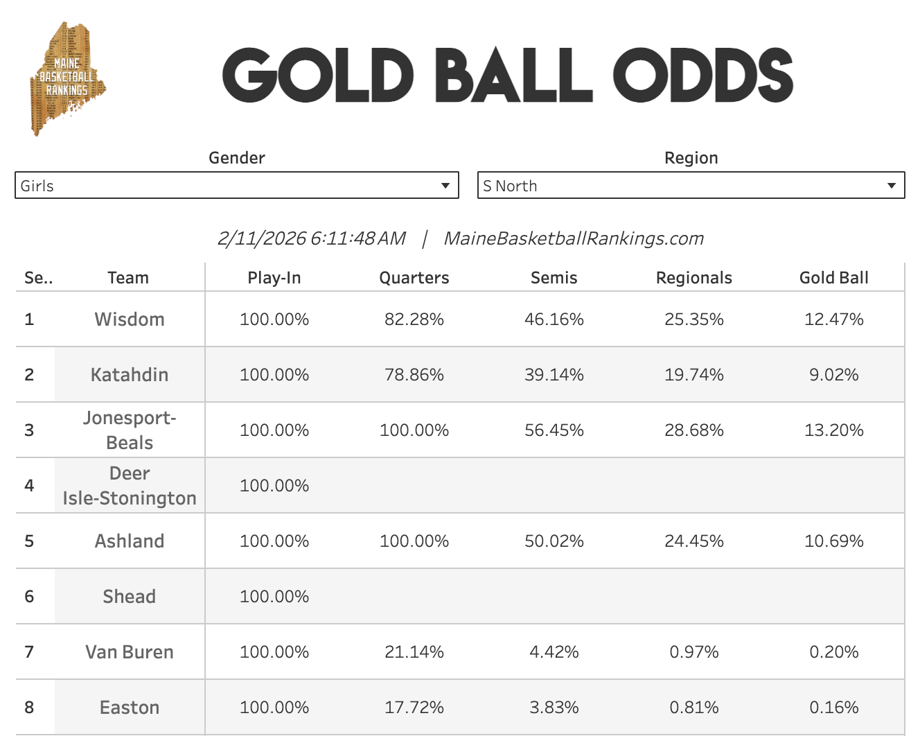 You'd think these numbers should be higher, but it's just so easy to have an off year where you lose a dumb prelim or something. I know Medomak lost a home prelim to Ellsworth or else they'd be in the 20s. We'll see if Gorham can win their prelim and stay on the girls leaderboard.