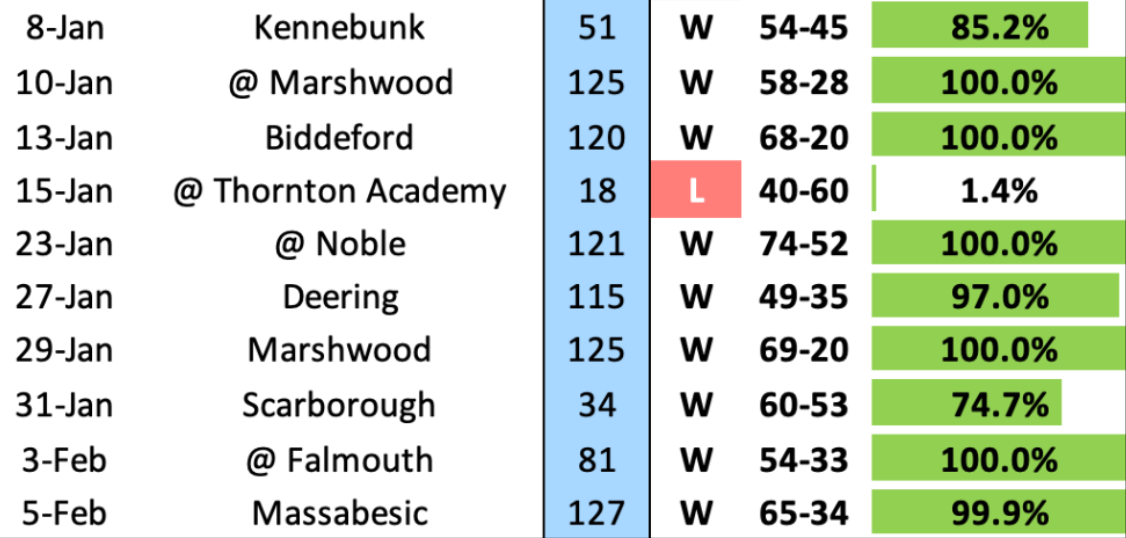 Still, Westbrook closed strong and Bonny Eagle didn't, except they beat Windham on January 27th and the team that beat Windham is in there somewhere. But also, the team that lost to Falmouth and Portland is in there.