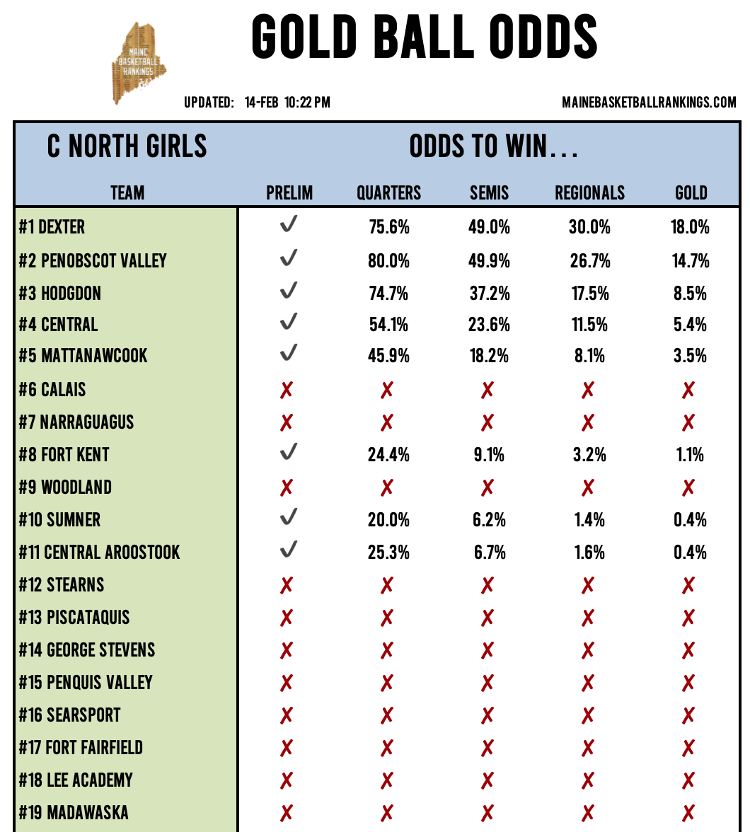 I'm pretty sure there's at least 1 upset here. On the girls' side, Leavitt's Caitlyn McCoy is out for the year. They're a much better team with her on the floor, so they're probably an actual underdog (instead of a 1 point favorite) to a York team that snuck into the tournament on the final day and nearly beat Wells in the finale. We could be seeing the early stages of a Cinderella story.