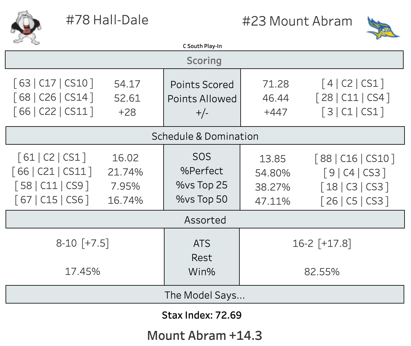 On the other hand, Mount Abram has won 11 of their last 12 and already beat Hall-Dale by 19 in December.