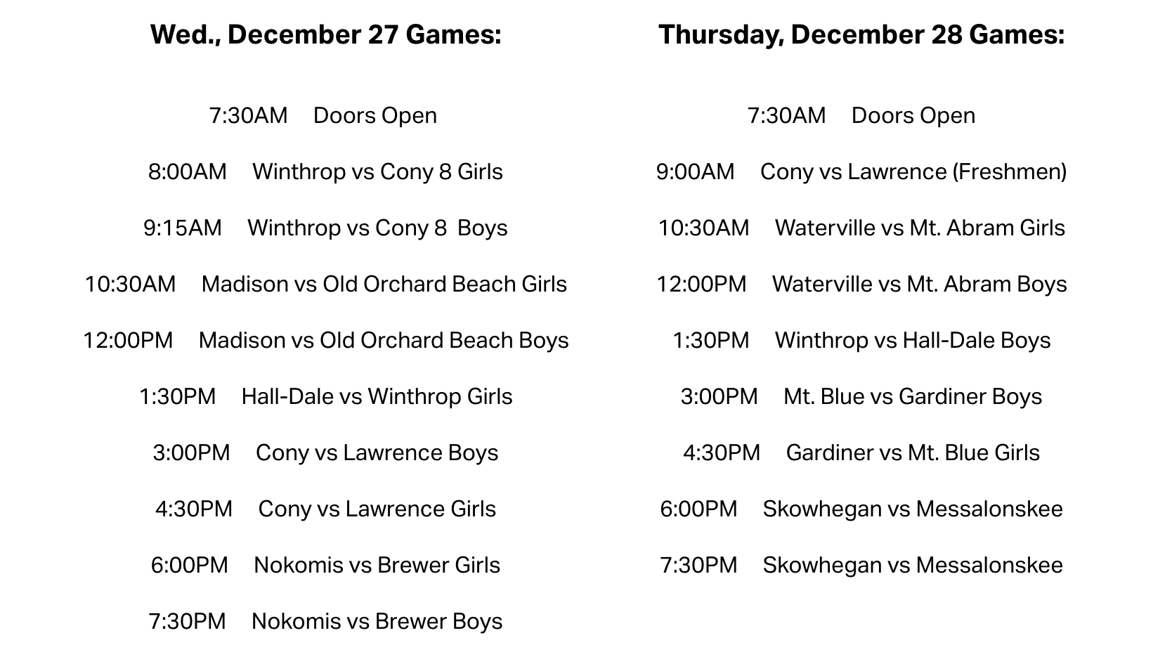 This is a nice schedule, but can we please bring back the Christmas tournaments? The MPA could add an exception to the exhibition rule. It wouldn't be hard!
